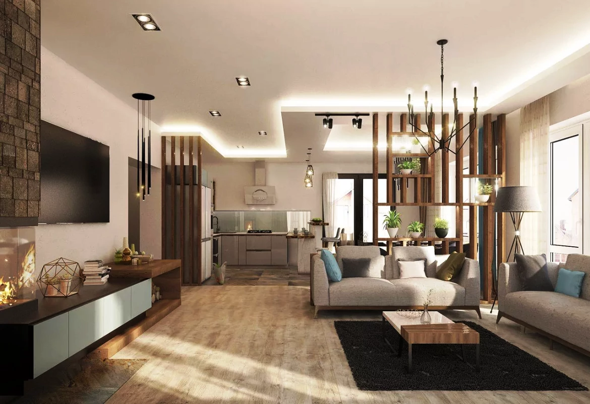 Пример выполненного ремонта в двухэтажном доме в восточном стиле.