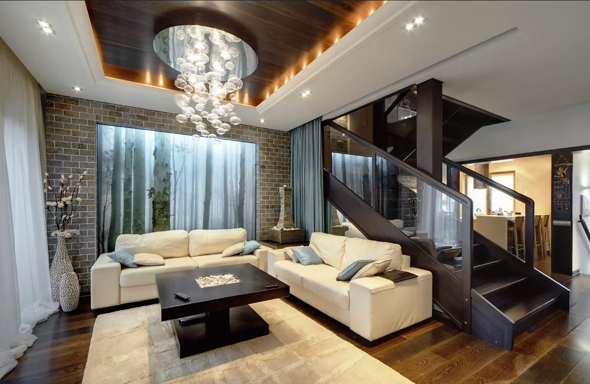 Пример выполненного ремонта в двухэтажном доме в восточном стиле.