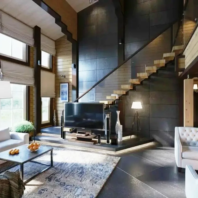 Пример выполненного ремонта в двухэтажном доме в восточном стиле.