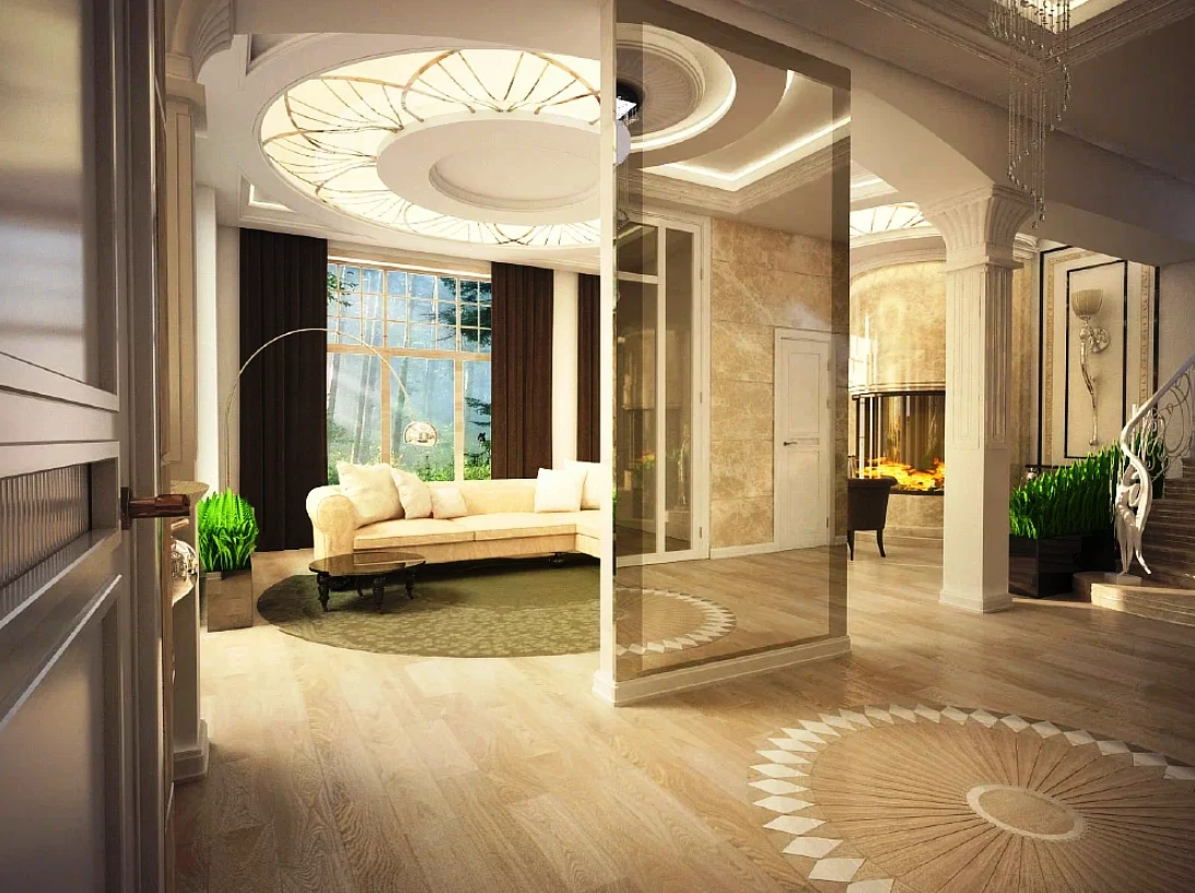 - Декоративная отделка в холле;