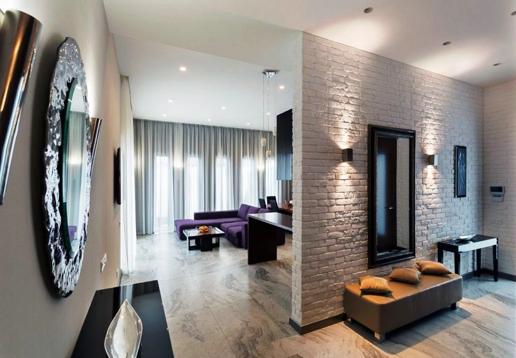 - Декоративная отделка в холле;