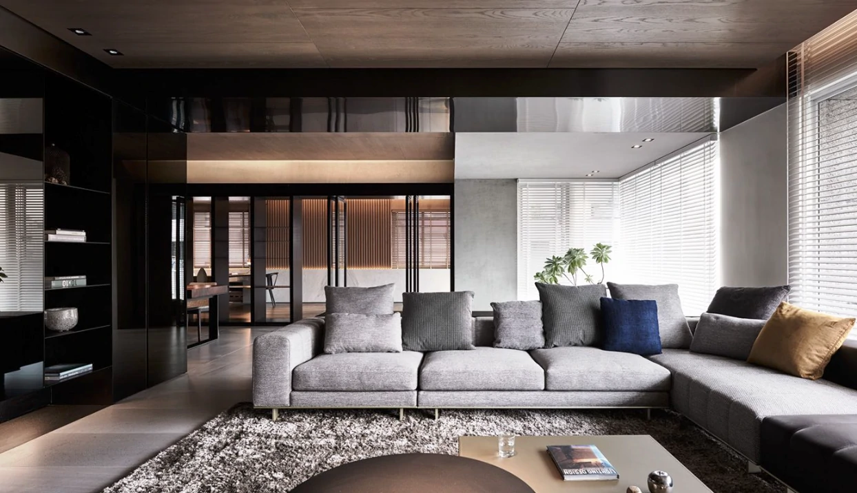 Одним из способов разделения пространства может стать использование разных полов или отделок на стенах. Например, зона спальни может быть выделена темным ламинатом или ковровым покрытием, в то время как гостиная будет иметь светлые отделочные материалы. Такой подход поможет визуально разделить пространство и сделает его более комфортным для использования. Можно использовать глянцевые натяжные потолки, они визуально расширяют пространство.