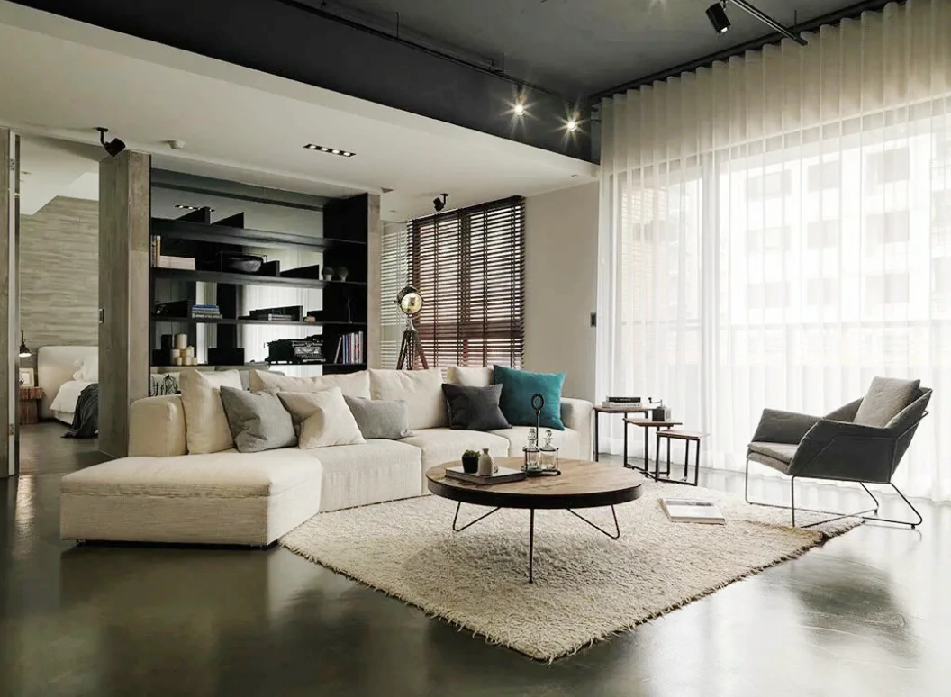 Одним из способов разделения пространства может стать использование разных полов или отделок на стенах. Например, зона спальни может быть выделена темным ламинатом или ковровым покрытием, в то время как гостиная будет иметь светлые отделочные материалы. Такой подход поможет визуально разделить пространство и сделает его более комфортным для использования. Можно использовать глянцевые натяжные потолки, они визуально расширяют пространство.