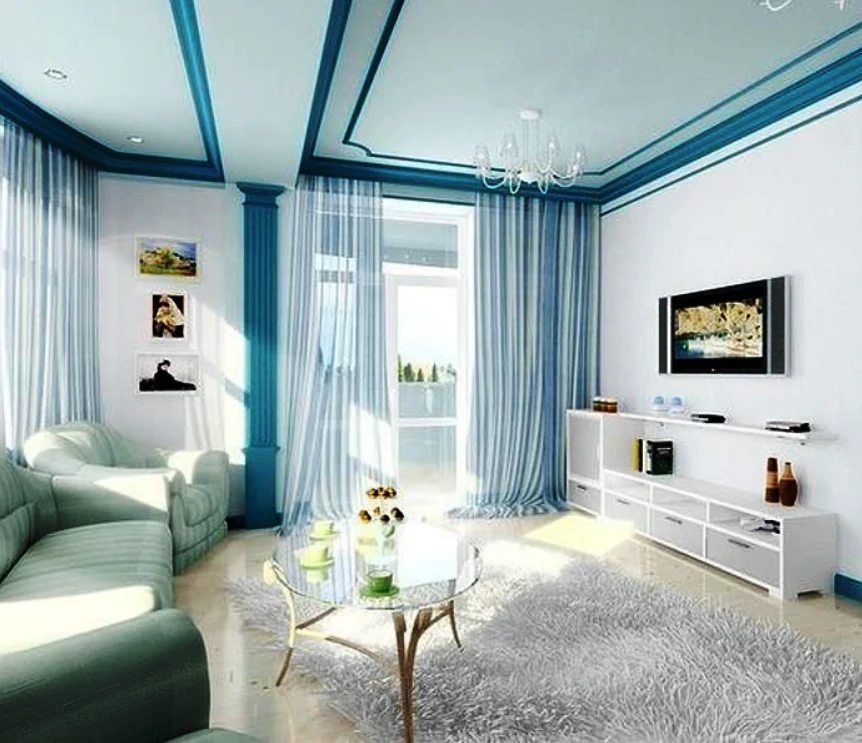 Одним из способов разделения пространства может стать использование разных полов или отделок на стенах. Например, зона спальни может быть выделена темным ламинатом или ковровым покрытием, в то время как гостиная будет иметь светлые отделочные материалы. Такой подход поможет визуально разделить пространство и сделает его более комфортным для использования. Можно использовать глянцевые натяжные потолки, они визуально расширяют пространство.
