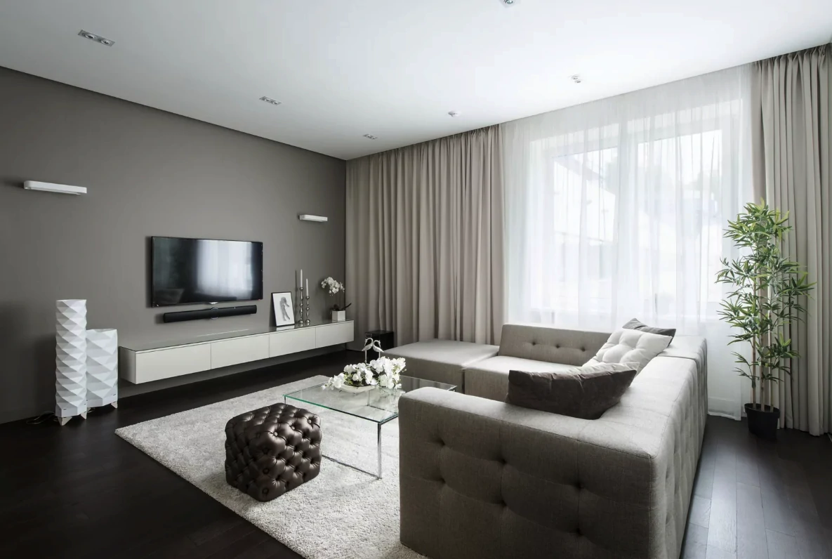 Одним из способов разделения пространства может стать использование разных полов или отделок на стенах. Например, зона спальни может быть выделена темным ламинатом или ковровым покрытием, в то время как гостиная будет иметь светлые отделочные материалы. Такой подход поможет визуально разделить пространство и сделает его более комфортным для использования. Можно использовать глянцевые натяжные потолки, они визуально расширяют пространство.