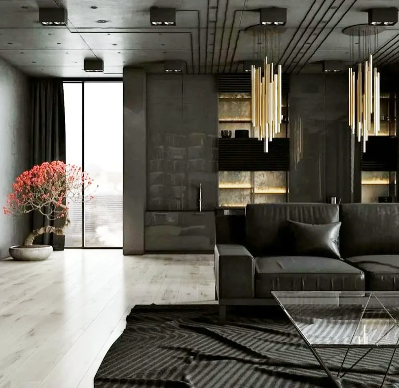 Одним из способов разделения пространства может стать использование разных полов или отделок на стенах. Например, зона спальни может быть выделена темным ламинатом или ковровым покрытием, в то время как гостиная будет иметь светлые отделочные материалы. Такой подход поможет визуально разделить пространство и сделает его более комфортным для использования. Можно использовать глянцевые натяжные потолки, они визуально расширяют пространство.