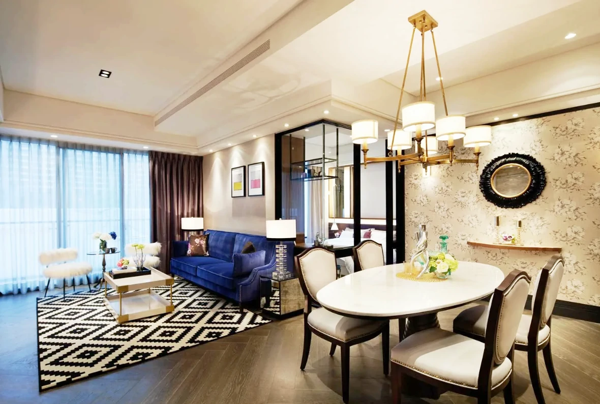 Одним из способов разделения пространства может стать использование разных полов или отделок на стенах. Например, зона спальни может быть выделена темным ламинатом или ковровым покрытием, в то время как гостиная будет иметь светлые отделочные материалы. Такой подход поможет визуально разделить пространство и сделает его более комфортным для использования. Можно использовать глянцевые натяжные потолки, они визуально расширяют пространство.