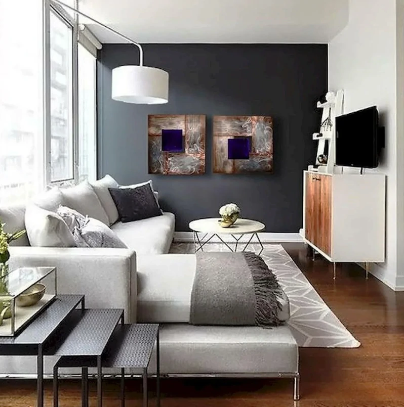 Одним из способов разделения пространства может стать использование разных полов или отделок на стенах. Например, зона спальни может быть выделена темным ламинатом или ковровым покрытием, в то время как гостиная будет иметь светлые отделочные материалы. Такой подход поможет визуально разделить пространство и сделает его более комфортным для использования. Можно использовать глянцевые натяжные потолки, они визуально расширяют пространство.