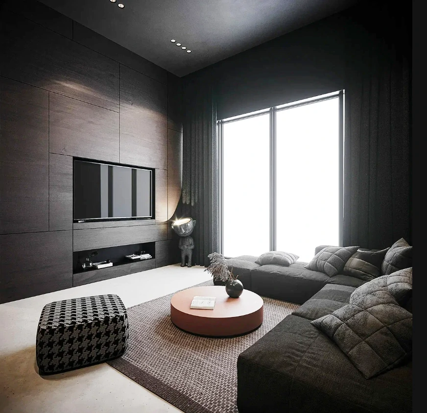 Одним из способов разделения пространства может стать использование разных полов или отделок на стенах. Например, зона спальни может быть выделена темным ламинатом или ковровым покрытием, в то время как гостиная будет иметь светлые отделочные материалы. Такой подход поможет визуально разделить пространство и сделает его более комфортным для использования. Можно использовать глянцевые натяжные потолки, они визуально расширяют пространство.