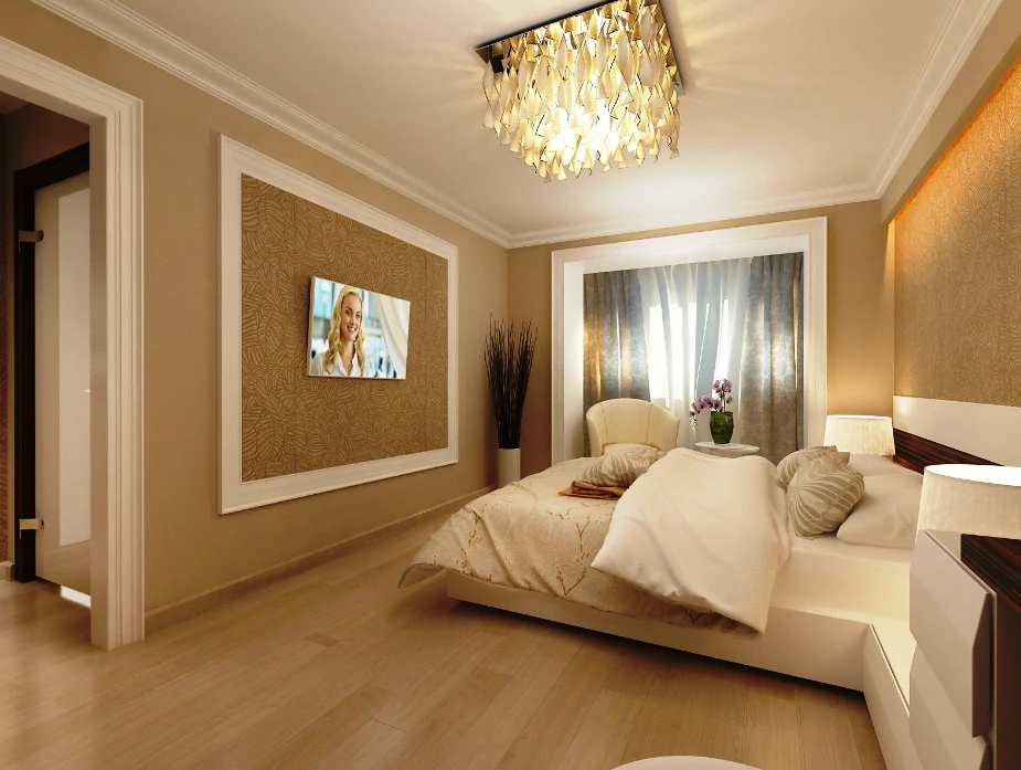 Одним из способов разделения пространства может стать использование разных полов или отделок на стенах. Например, зона спальни может быть выделена темным ламинатом или ковровым покрытием, в то время как гостиная будет иметь светлые отделочные материалы. Такой подход поможет визуально разделить пространство и сделает его более комфортным для использования. Можно использовать глянцевые натяжные потолки, они визуально расширяют пространство.