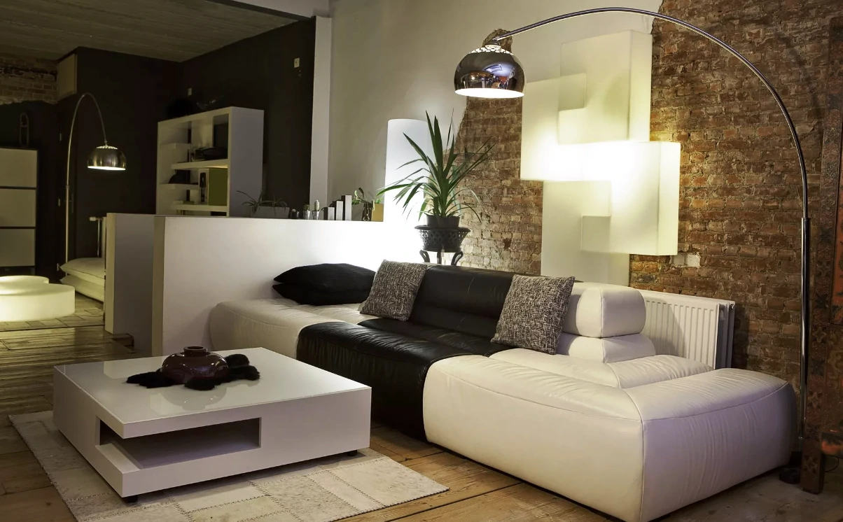 Одним из способов разделения пространства может стать использование разных полов или отделок на стенах. Например, зона спальни может быть выделена темным ламинатом или ковровым покрытием, в то время как гостиная будет иметь светлые отделочные материалы. Такой подход поможет визуально разделить пространство и сделает его более комфортным для использования. Можно использовать глянцевые натяжные потолки, они визуально расширяют пространство.