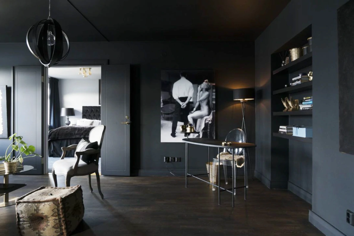 Одним из способов разделения пространства может стать использование разных полов или отделок на стенах. Например, зона спальни может быть выделена темным ламинатом или ковровым покрытием, в то время как гостиная будет иметь светлые отделочные материалы. Такой подход поможет визуально разделить пространство и сделает его более комфортным для использования. Можно использовать глянцевые натяжные потолки, они визуально расширяют пространство.