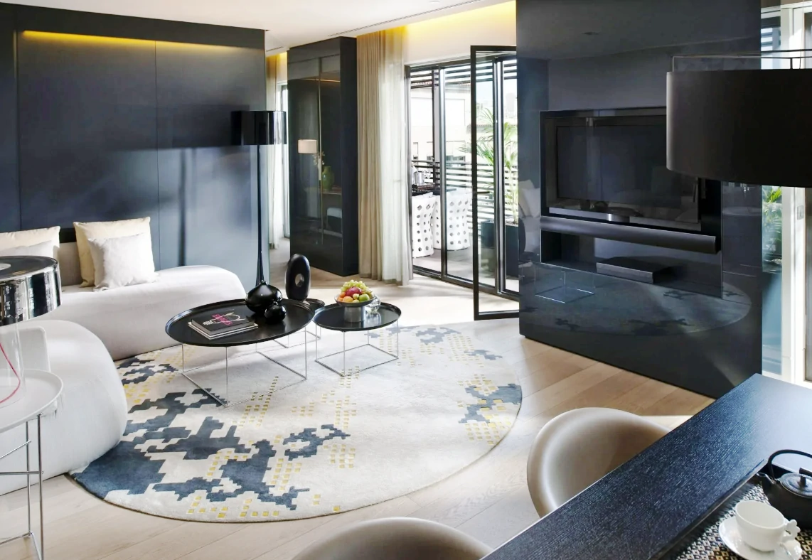 Одним из способов разделения пространства может стать использование разных полов или отделок на стенах. Например, зона спальни может быть выделена темным ламинатом или ковровым покрытием, в то время как гостиная будет иметь светлые отделочные материалы. Такой подход поможет визуально разделить пространство и сделает его более комфортным для использования. Можно использовать глянцевые натяжные потолки, они визуально расширяют пространство.