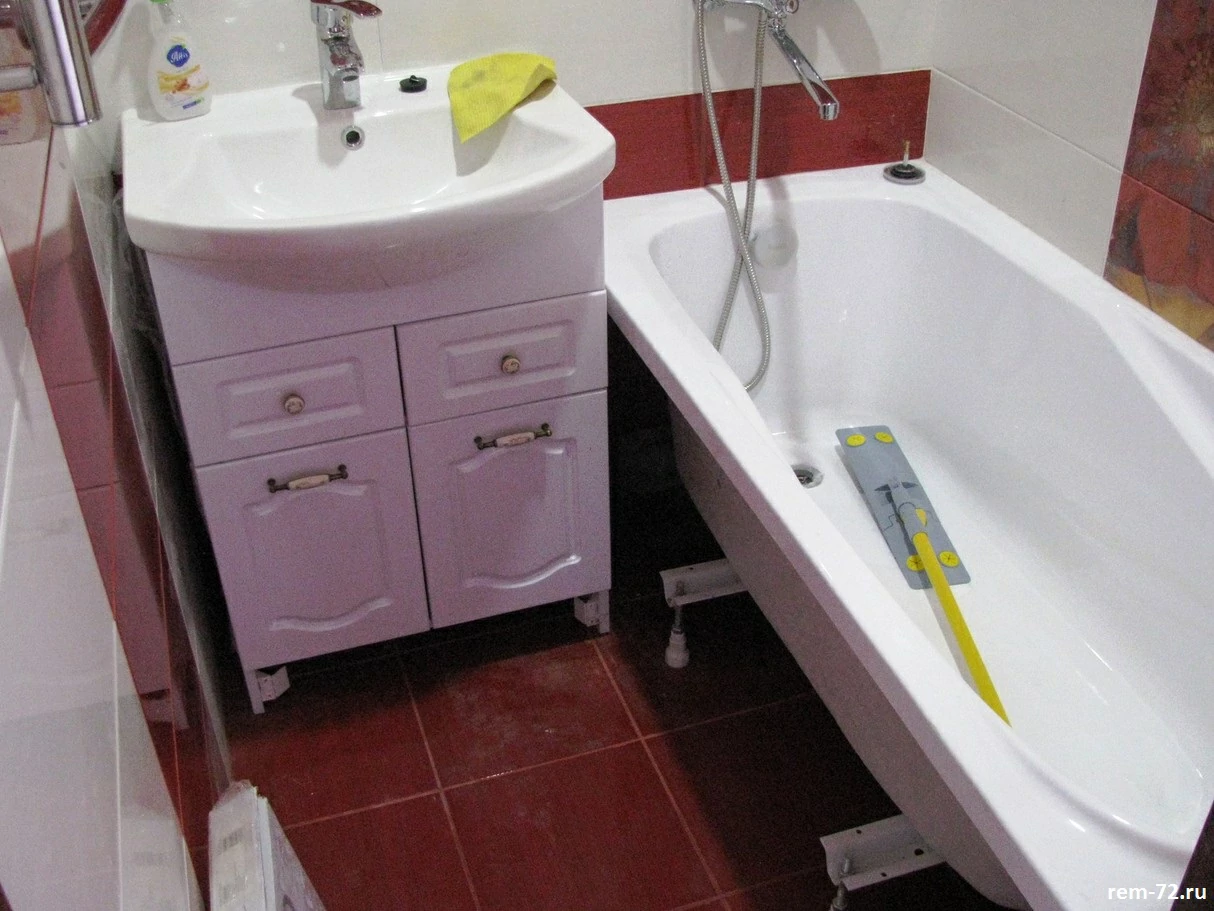 Пример отделки с ремонтом ванной комнаты: