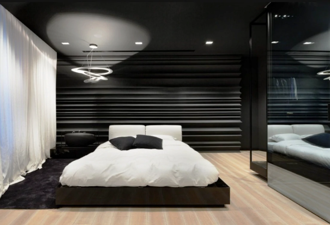 Одним из способов разделения пространства может стать использование разных полов или отделок на стенах. Например, зона спальни может быть выделена темным ламинатом или ковровым покрытием, в то время как гостиная будет иметь светлые отделочные материалы. Такой подход поможет визуально разделить пространство и сделает его более комфортным для использования. Можно использовать глянцевые натяжные потолки, они визуально расширяют пространство.