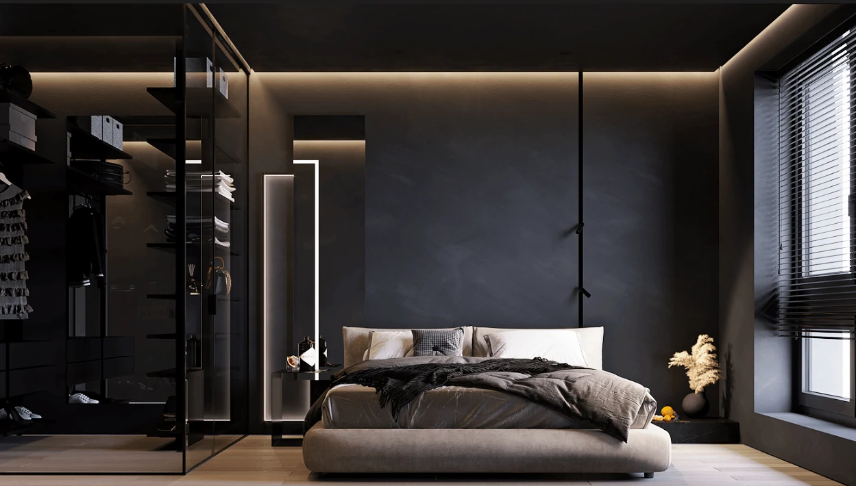 Одним из способов разделения пространства может стать использование разных полов или отделок на стенах. Например, зона спальни может быть выделена темным ламинатом или ковровым покрытием, в то время как гостиная будет иметь светлые отделочные материалы. Такой подход поможет визуально разделить пространство и сделает его более комфортным для использования. Можно использовать глянцевые натяжные потолки, они визуально расширяют пространство.