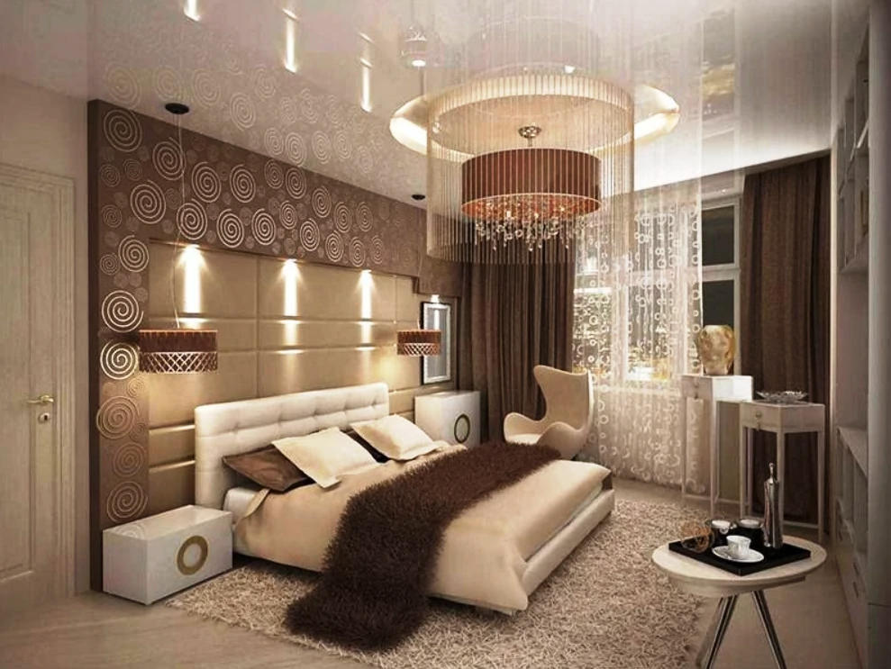 Одним из способов разделения пространства может стать использование разных полов или отделок на стенах. Например, зона спальни может быть выделена темным ламинатом или ковровым покрытием, в то время как гостиная будет иметь светлые отделочные материалы. Такой подход поможет визуально разделить пространство и сделает его более комфортным для использования. Можно использовать глянцевые натяжные потолки, они визуально расширяют пространство.