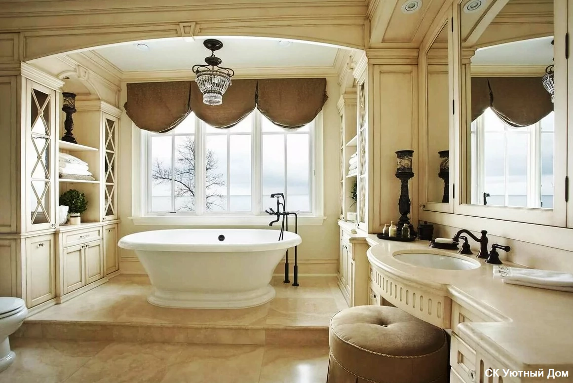 - Большая площадь: Ванные комнаты в коттеджах часто имеют большую площадь, что позволяет создать более просторное и комфортное пространство.